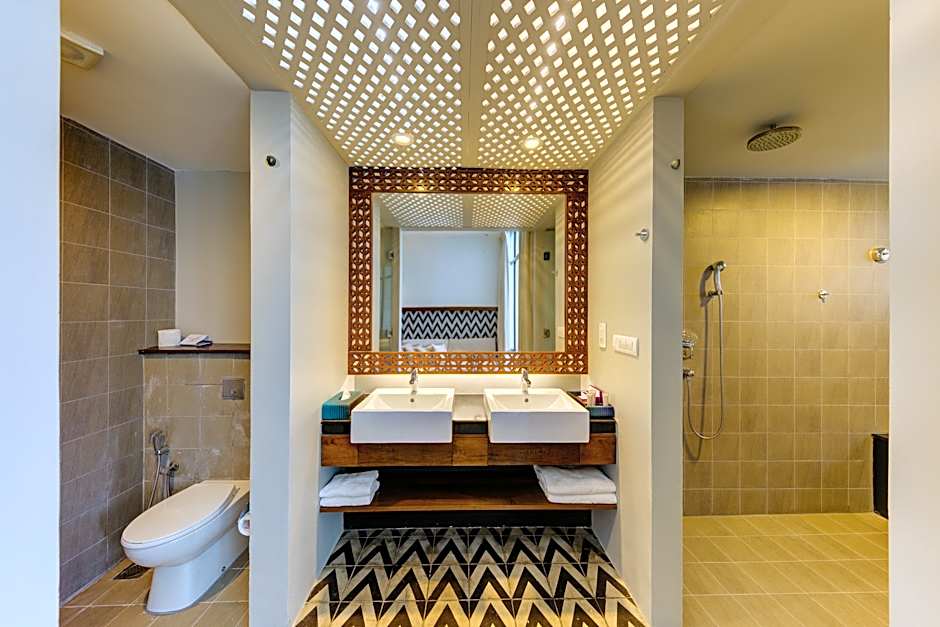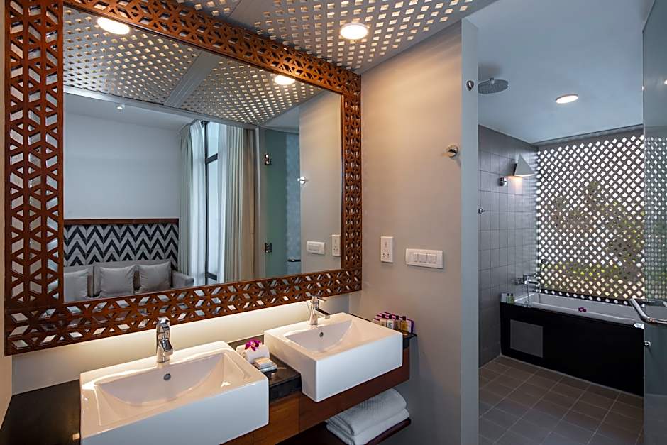 Deluxe Pool Terrace Twin Double is 560 square feet and includes 2 single beds 80-130 width and is Wheelchair-accessible.
