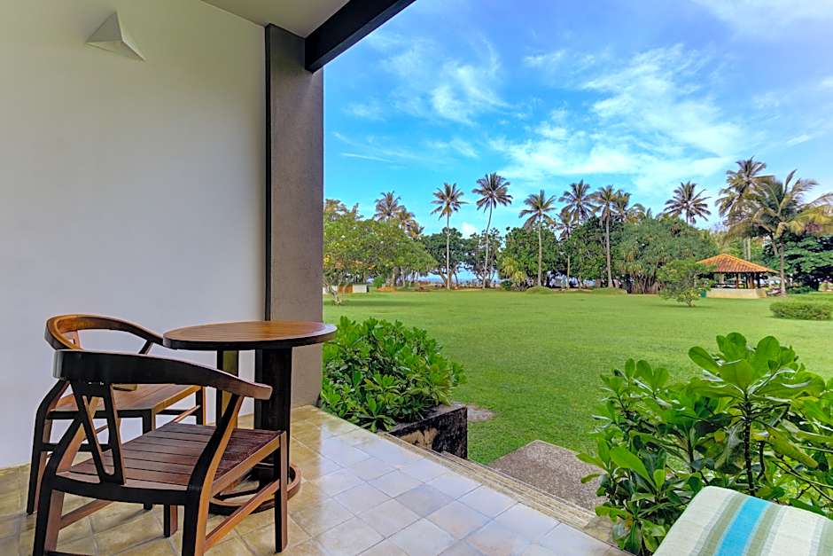 Superior Garden Terrace Triple is 420 square feet and includes a queen-size bed 150-154 width plus balcony, desk, satellite tv , hairdryer, tea and coffee making facilities , ironing set, and safe and is Wheelchair-accessible.