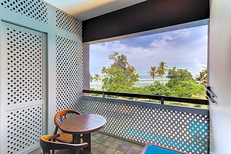 Superior Ocean View Triple is 420 square feet and includes a queen-size bed 150-154 width plus balcony, desk, satellite tv , hairdryer, tea and coffee making facilities , ironing set, and safe and is Wheelchair-accessible.
